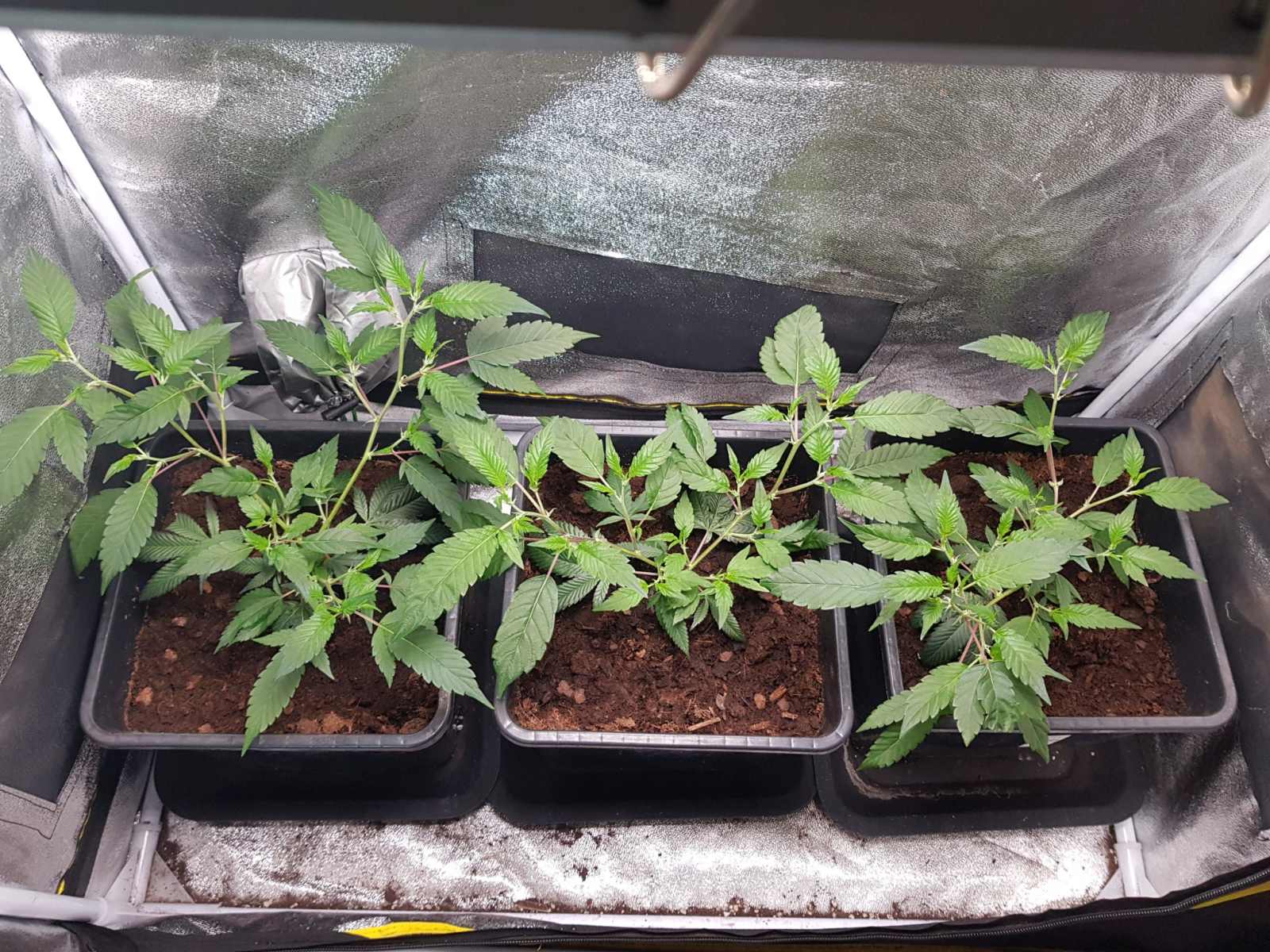 1 week veg in 11L pots on 12 and 2 cycle,throwing 1 and 2 blade leaves after changing from 12 and 1